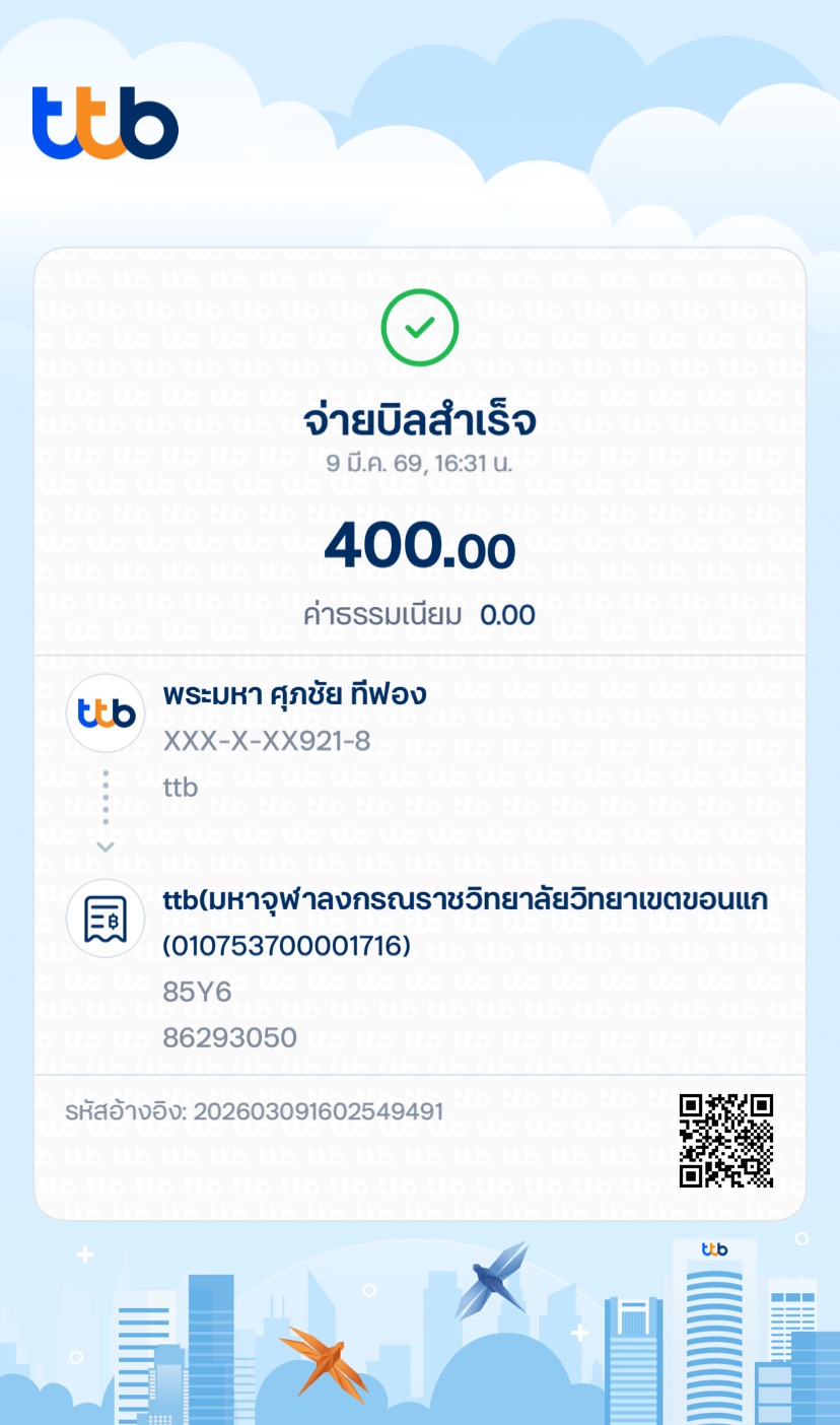 | 96 | นายณัฐเมศร์ สิริโรจน์กมล | 400 | 21/06/2567 | 10.46 | ดูภาพ | |