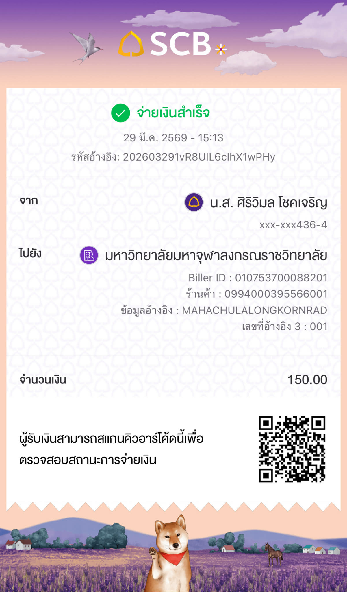 | 231 | พัชรพงษ์ มีแก้ว | นิติศาสตร์ | 150 | 29/03/2569 : 15:14 | ดูภาพ | |